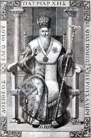 Related to the Greek δότης is the word δόσις of a similar, if not identical, function. It’s common in the evolution of languages that the consonants “t” and “s” will merge. For example, the word for “sea” in Koine Greek is θάλασσα but in the Attic dialect, it was written as θάλαττα. It is from δόσις where we get the name Θεοδόσιος theodosios — gift of God. It is roughly analogous to the Hebrew name נְתַנְאֵל or “Nathaniel” in transliteration. It also corresponds to the Arabic name عطالله ‘aṭṭallah. Today, the Greek Orthodox Archbishop of Sebastia (a Palestinian village) bears both the Greek and Arabic forms of this name.